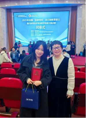 2025年11月21日至23日,全国“田家炳杯”全日制教育硕士专业学位研究生现代教育技术专业教学技能大赛决赛在山东师范大学举行。经过初赛的严格选拔,来自全国各高校的198名优秀选手同台竞技,2024级现代教育技术专业研究生秦易荣获全国三等奖。